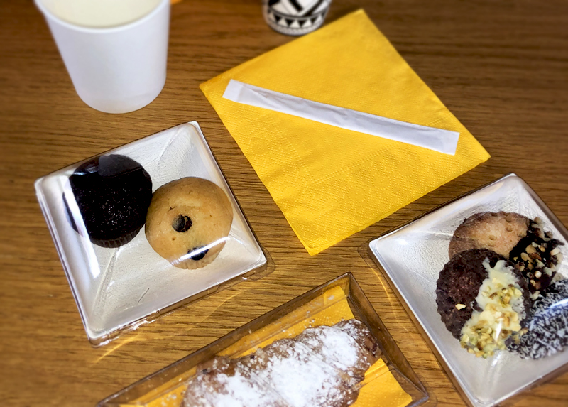 Menu individuale con piccole portate dolci e accessori